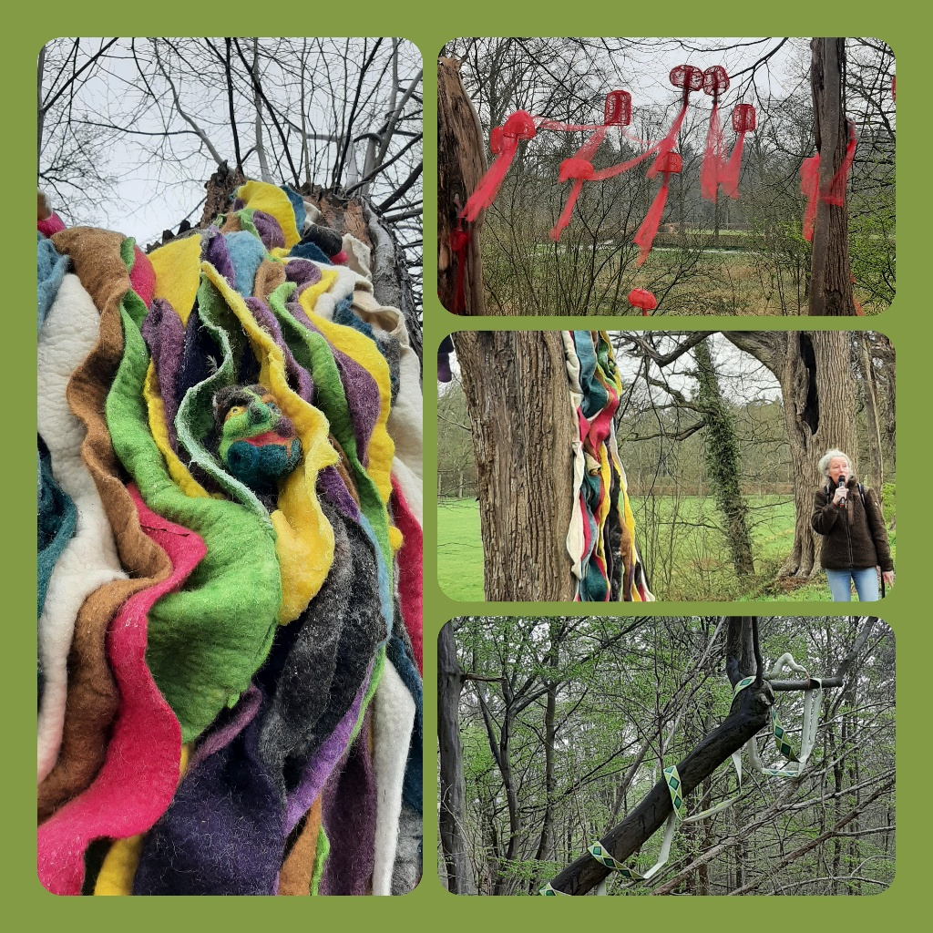 Ineke van Dijk nodigt je uit om zelf een fris blad toe te voegen aan haar Groeiboom #nr. 26. Wendy Janssen geeft je een inkijkje in de kern #nr27. “In de kern van de bomen op deze wal leeft het leven”, aldus Janssen. Tot slot werd ik heel vrolijk van Bastiek #nr 28 van Wiesje de Boer. “De Bastiek is een knipoog naar de renovatie met een vilten boombast. Het herstel met behoud van eigenheid,” aldus De Boer. De kleuren van haar vilten boombast zijn gebaseerd op de kleuren die je na de renovatie in Huis Bergh kunt zien.