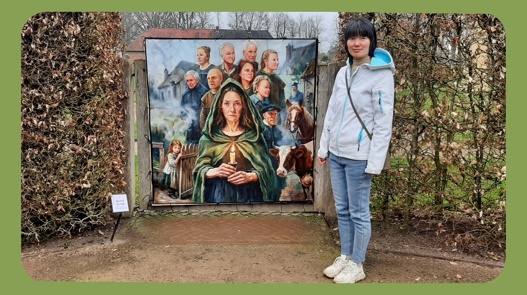 De Chinees-Nederlandse kunstenaar Youzan Chen heeft met 42 deelnemers ook naar het leven van Mechteld ten Ham #nr. 7 gekeken. “Zonder kritisch denken zijn mensen gevoelig voor roddels en geruchten. Wie we niet kennen wordt een vreemdeling, aldus Chen. Het kunstwerk dat je hier ziet is het resultaat van een samenwerking. Begrip en verbondenheid zijn ook nu hard nodig. Bijna op het einde van de route geeft Hans Lammers zijn visie op Mechteld, het vonnis in vier vormen #nr. 29. De installatie omvat een cirkel, een kubus, een spiraal en een tetraëder, een regelmatig viervlak.